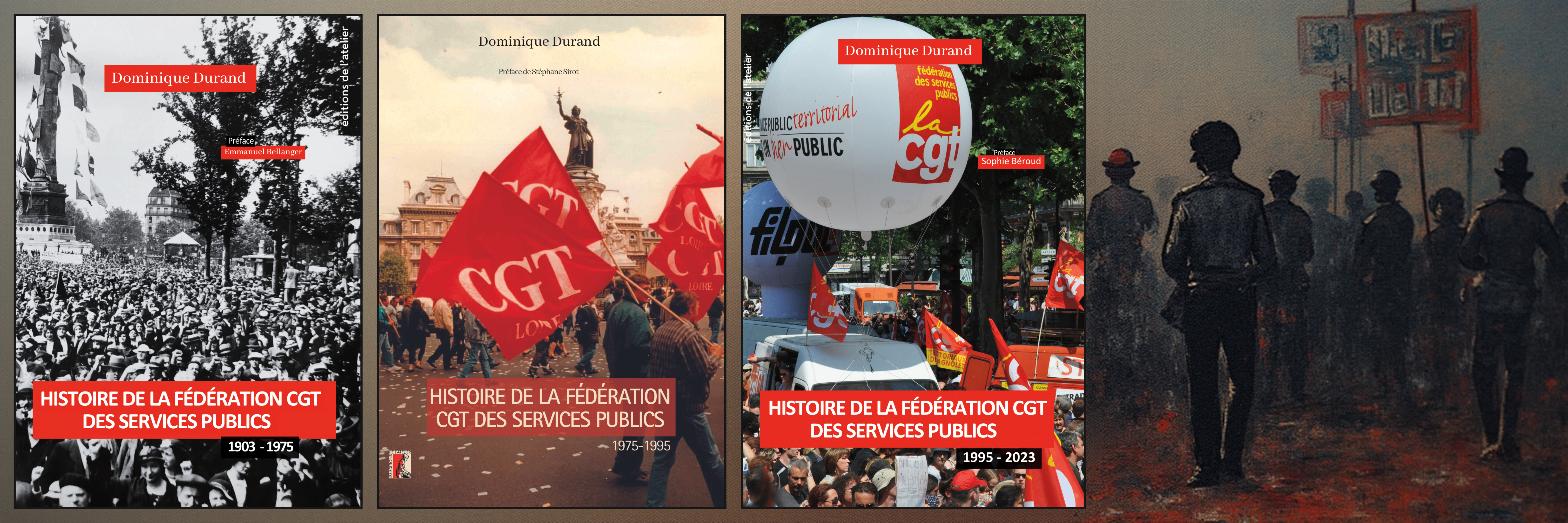La fédération CGT des Services publics a fêté ses 120 ans d’existence en décembre 2023. À cette occasion, elle a édité une exposition sur l’histoire de la fédération créée par son IHS pour répondre au souhait de la fédération de commémorer ses 120 ans d’histoire, et un ouvrage écrit par Dominique Durand en trois tomes :