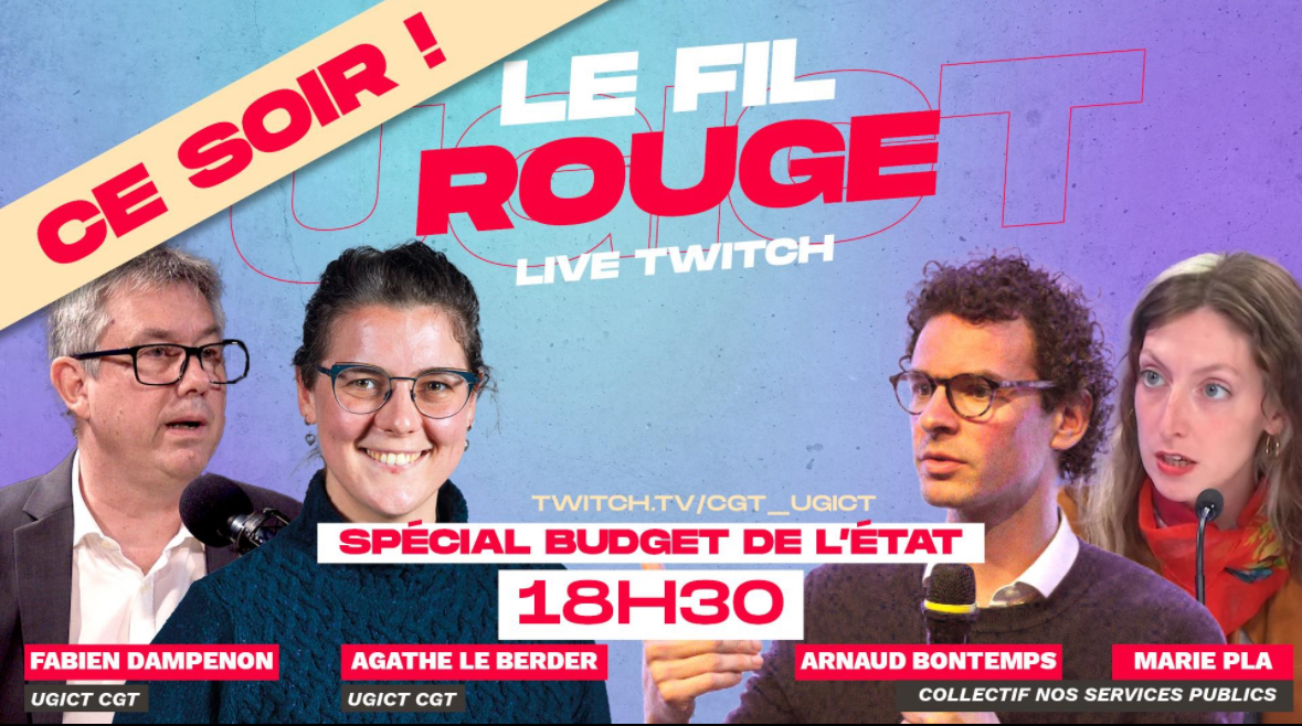 📹 Retrouvez l’Ugict-CGT et le Collectif Nos Services Publics en direct sur la chaine Twitch de l’Ugict (https://www.twitch.tv/cgt_ugict) dans notre nouveau format d’émission débat "Le Fil Rouge"