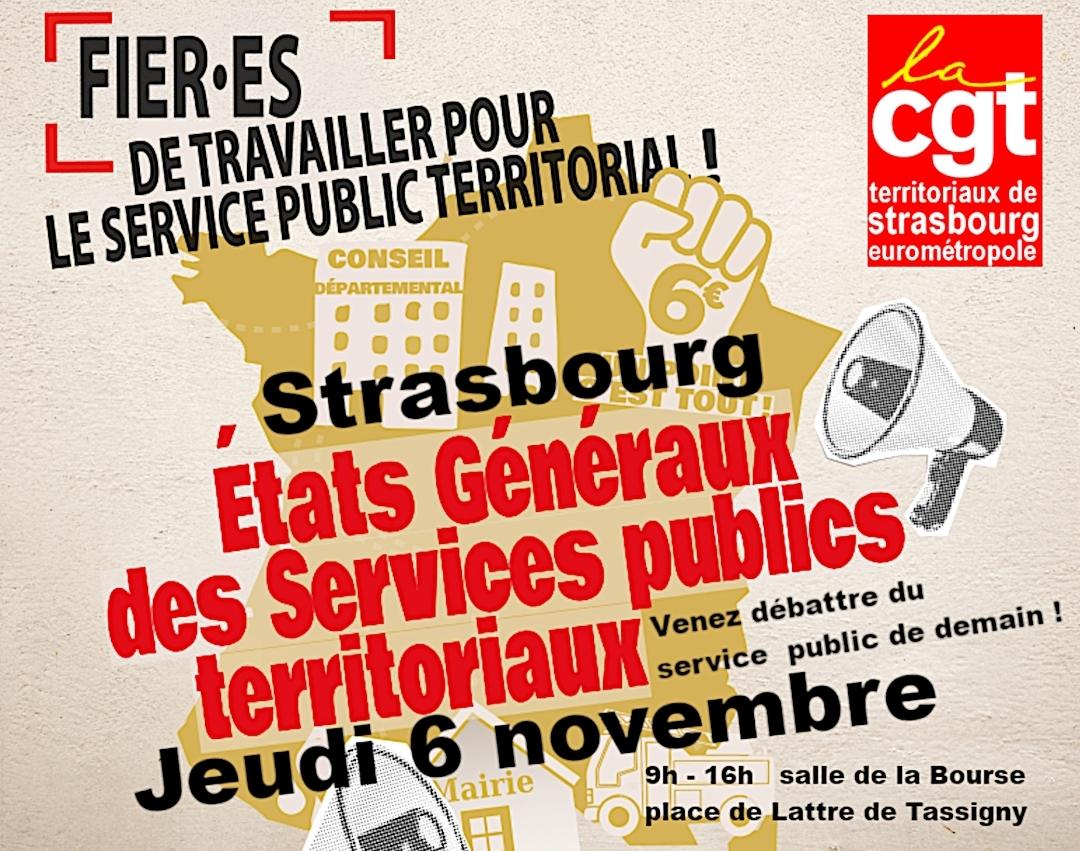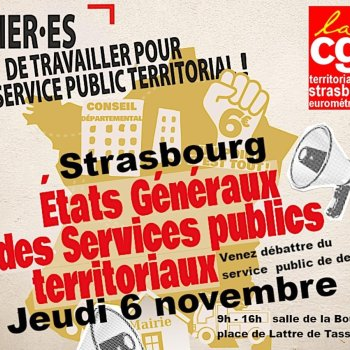 Le jeudi 6 novembre, de 9h à 16h, la CGT Eurométropole Strasbourg vous attend pour vous écouter et nous dire ce que, selon vous, devrait être le service public territorial de demain.