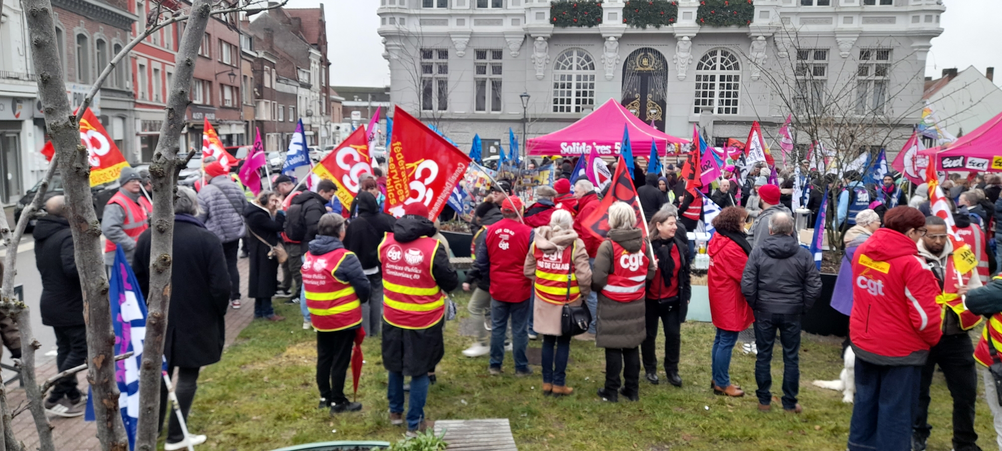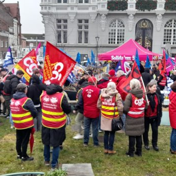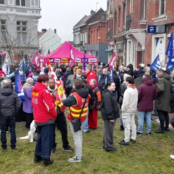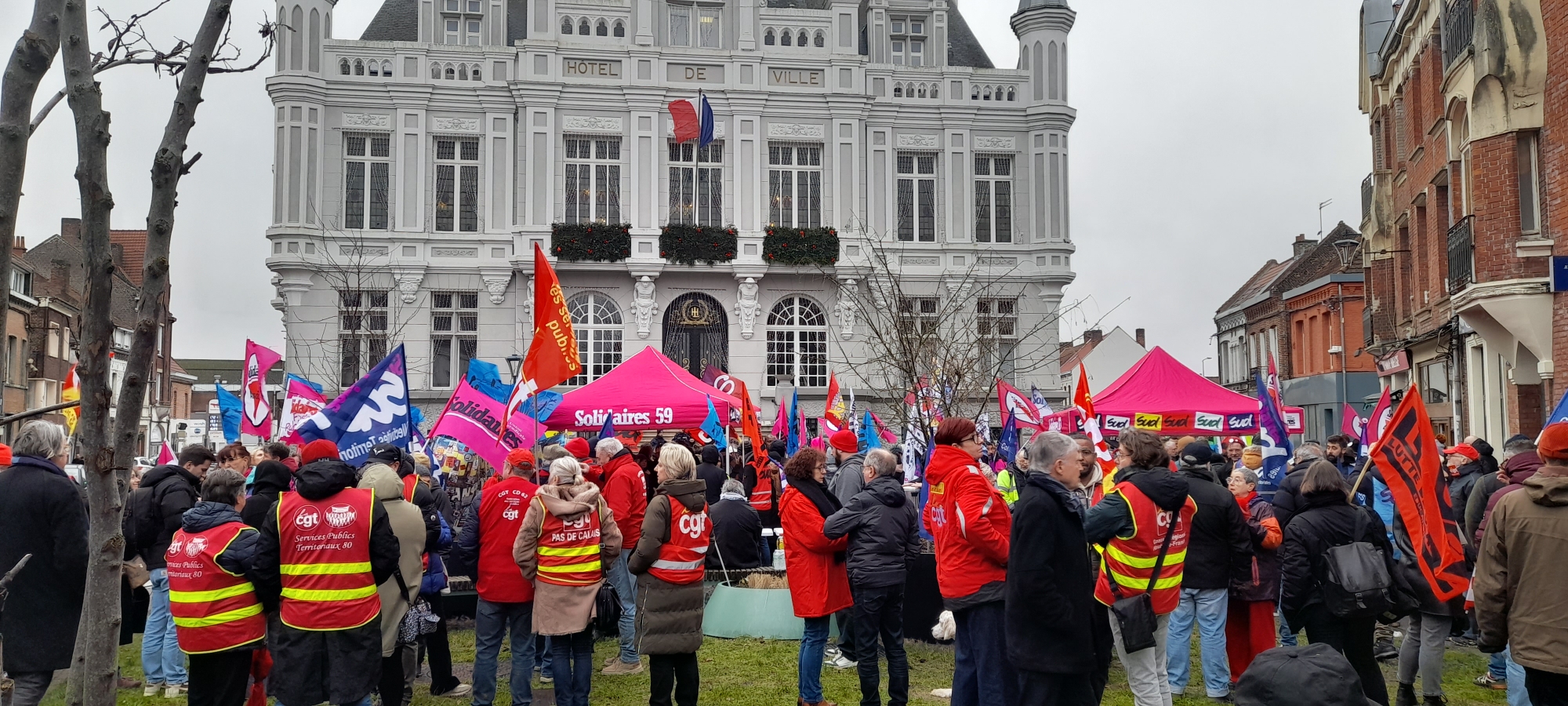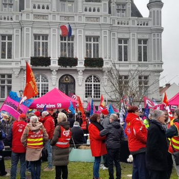 Ce lundi 12 janvier, à l’appel de Sud territoriaux, la FDSP CGT et FSU territoriale, un rassemblement s’est tenu devant l’hôtel de ville d’Hénin-Beaumont, en soutien à Djelloul Khéris, délégué syndical Sud, qui comparaissait devant la commission de discipline pour une révocation, à la demande de son maire RN.