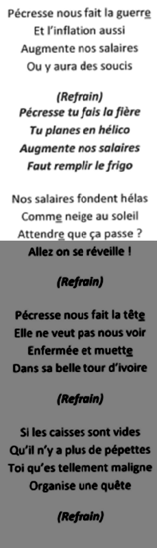- Une chanson, reprise pas moins de 3 fois, en chœur, par la totalité des manifestants :
