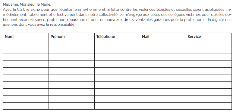 Je signe et je m’engage pour la protection, le respect et la dignité au travail des agentes de notre collectivité !