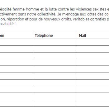 Notre organisation exige des actes et non des mesurettes de communication. Vous êtes actuellement (notre employeuse, notre employeur) et vous briguez un nouveau mandat pour les prochaines élections municipales en mars prochain. Votre engagement est donc attendu pour garantir concrètement la pleine application de la loi dans notre collectivité, pour faire respecter l’égalité femme-homme et la lutte contre les violences sexistes et sexuelles par :