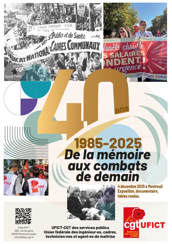 Le 4 décembre 2025, au siège confédéral de la CGT à Montreuil, l’UFICT-CGT des services publics célébrera 40 ans d’histoire, de luttes et d’émancipation collective.