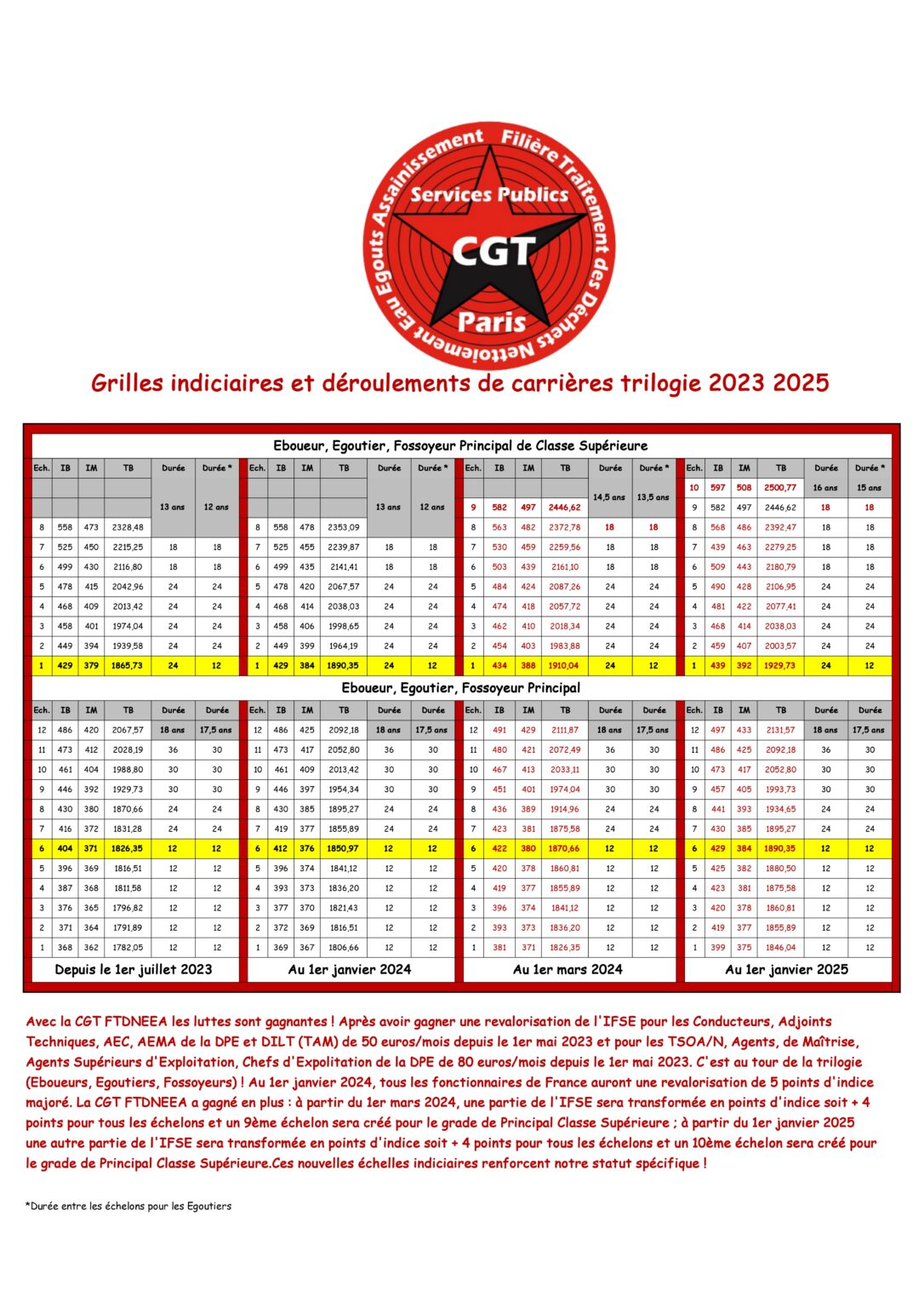 Voir en téléchargement le tract ainsi que les grilles indiciaires et déroulement de carrières trilogie 2023-2025.